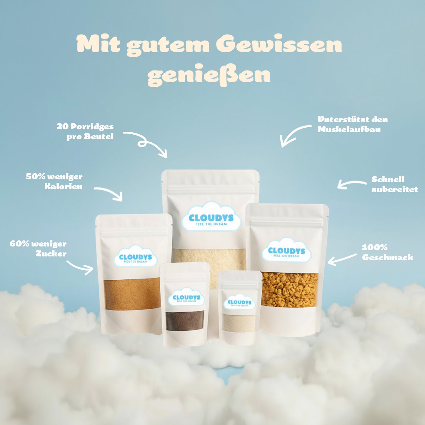 Etwas, das nicht nach Kompromiss schmeckt, sondern nach Lebensfreude. Also haben wir angefangen zu experimentieren. Aus einfachen Zutaten und viel Leidenschaft ist CLOUDYS entstanden – eine Marke, die für Balance, Geschmack und ehrliche Qualität steht.