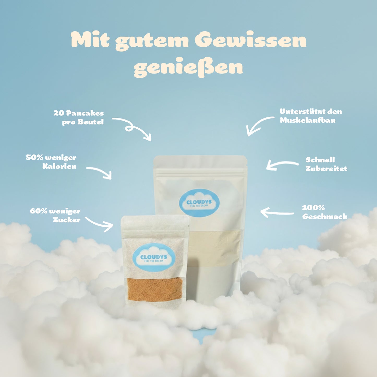 Sich was gönnen ohne schlechtes Gewissen ? Jetzt mit CLOUDYS Protein Bundle. Über 100g PROTEIN, lower calories, aber natürlcih mit dem klassischen CLOUDYS Geschmack! Glaub mir du schmeckst keinen Unterschied!