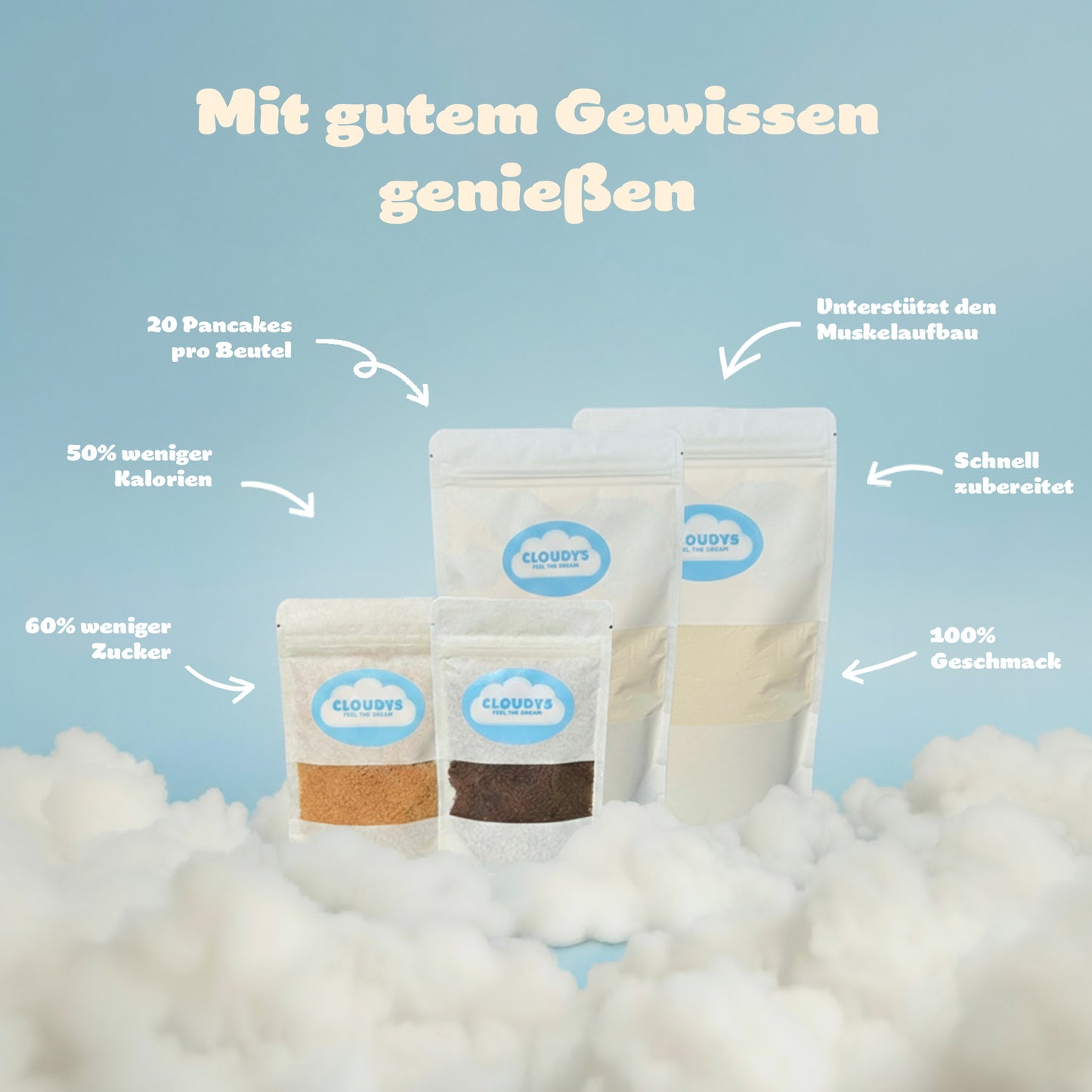 Sich was gönnen ohne schlechtes Gewissen ? Jetzt mit CLOUDYS Protein Bundle. Über 200g PROTEIN, lower calories, aber natürlcih mit dem klassischen CLOUDYS Geschmack! Glaub mir du schmeckst keinen Unterschied!